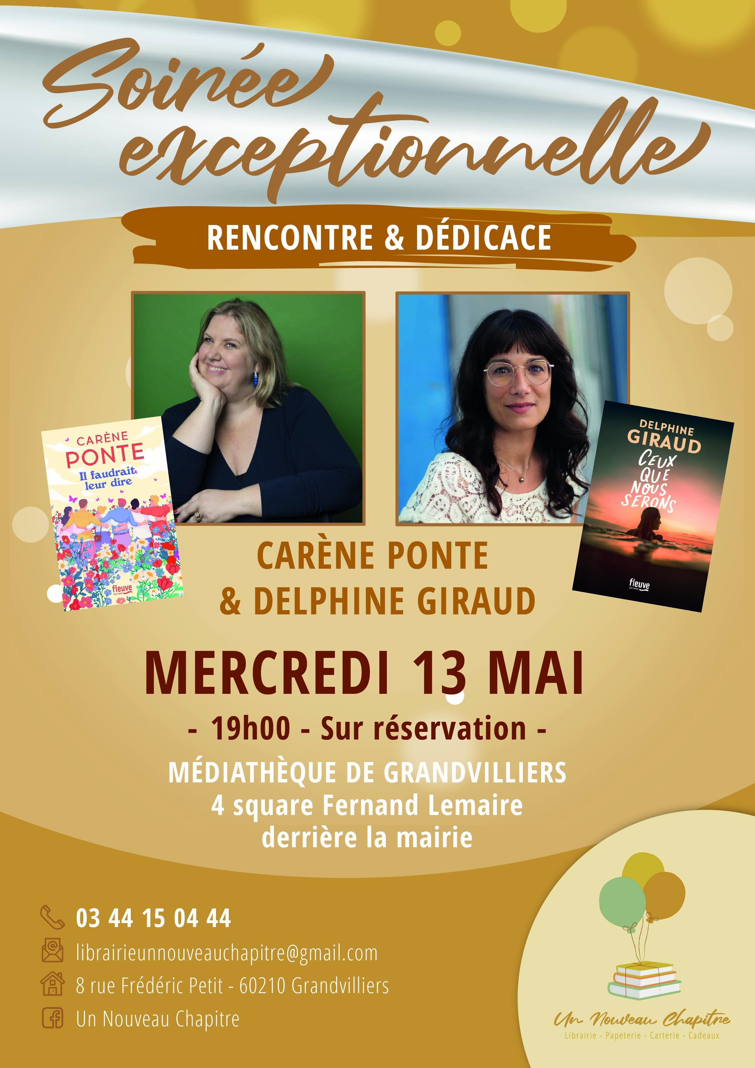 Venez rencontrer Carène Ponte et Delphine Giraud et partagez un moment d'échange accessible et interactif autour de leurs univers littéraires. En partenariat avec la librairie Un nouveau chapitre de Grandvilliers.