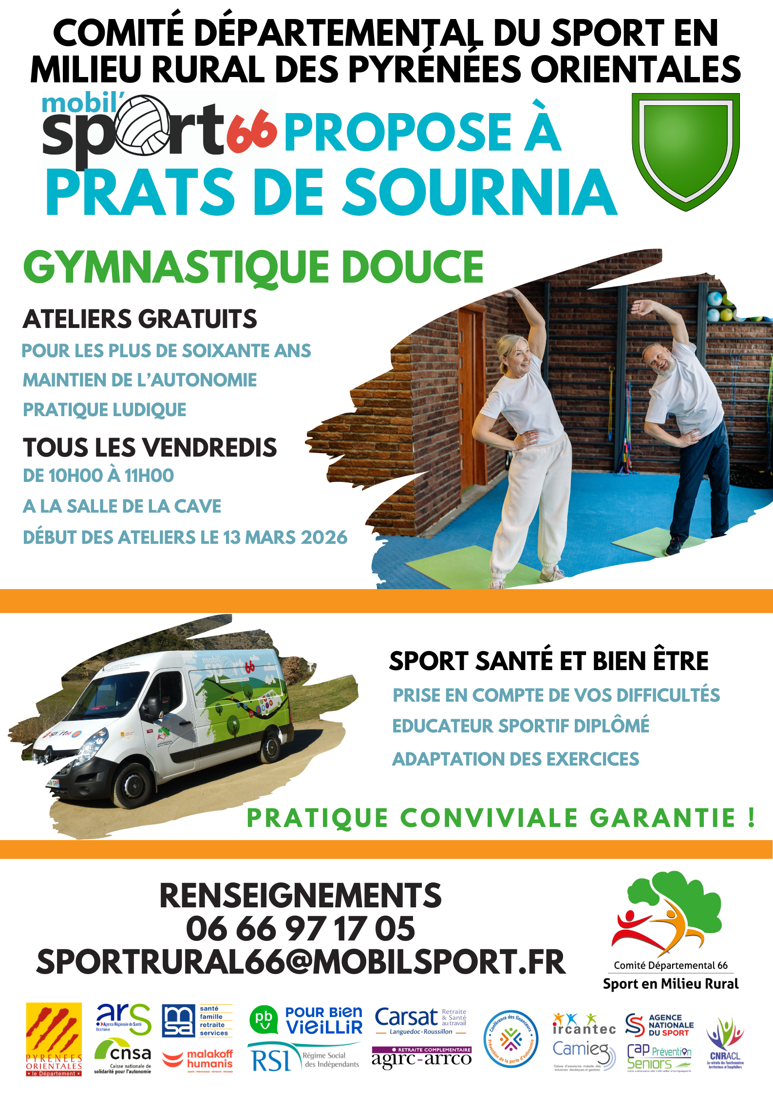 Notre comité propose des activités variées et destinées en priorité aux personnes vivant dans les zones rurales. Via le Mobil'Sport66, notre gymnase itinérant, nous venons dans votre commune et adaptons nos séances à vos capacités, avec pour mot d'ordre : la convivialité !